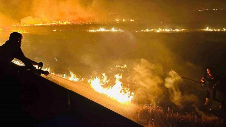 Cizre'de anız yangını ekili alanlara ulaşmadan söndürüldü