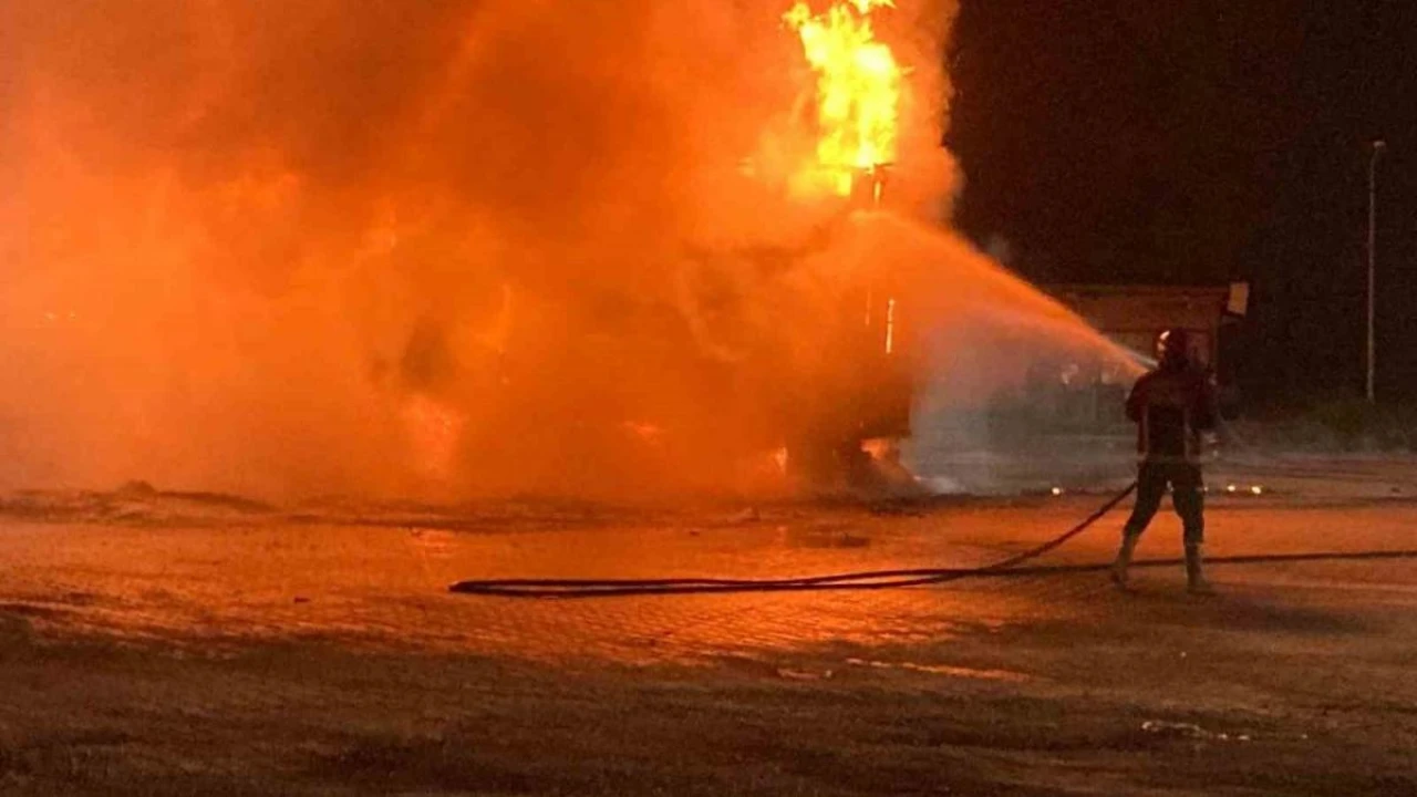 Çocuk bezi taşıyan tırın dorsesi alev topuna döndü