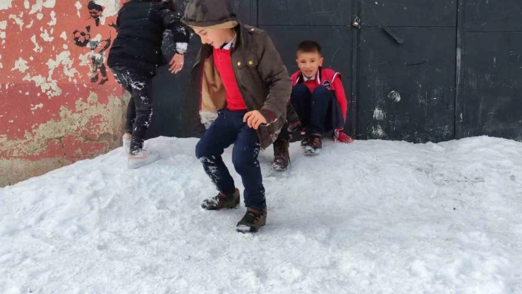 Ardahan’ın Hanak ilçesine bağlı Koyunpınar köyünde dün sabah itibarıyla etkili olan yoğun kar yağışı, çocukların eğlencesi oldu. İlçeye bağlı Koyunpınar köyü okulunda okuyan çocuklar, uzun zamandan sonra yağan kar yağışını fırsata dönüştürerek gün boyu eğlendi. Neşeli dakikalar geçiren minikler, kayarken düşmelerine rağmen eğlenceye kaldıkları yerden devam etti.