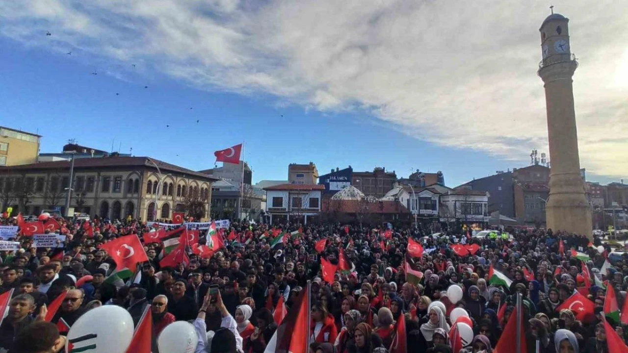 “23 Aralık Dünya Şehit Çocuklar Günü” temasıyla düzenlenen yürüyüş Çorum Valiliği önünden başladı. Ellerinde Türk ve Filistin bayrakları ve pankartlar taşıyan binlerce kişi Hürriyet meydanına kadar yürüdü. Kuran’ı Kerim tilavetinin ardından Irak’ın kuzeyinde bölücü terör örgütü mensupları tarafından yapılan saldırıda şehit olan 6 asker ve Filistin’deki saldırılardaki hayatların kaybeden mazlumlar için dua edildi.