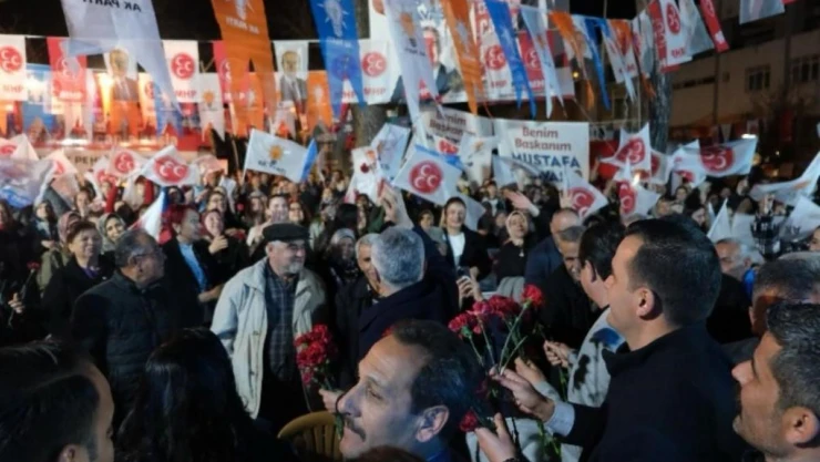 Cumhur İttifakı Aydın Büyükşehir Belediye Başkan Adayı Mustafa Savaş, Efeler Belediye Başkan Adayı Burak Pehlivan Umurlu'da mitin düzenledi. Eski Belediye Meydanı'nda düzenlenen mitingde vatandaşların yoğun ilgisi dikkat çekerken, mehteran takımının konseri ise meydandaki coşkuyu arttırdı.