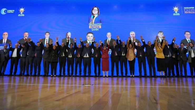 Cumhur İttifakı’nın Gaziantep adayları ilçe ilçe sahneye çağrılarak tanıtıldı. Gaziantep Büyükşehir Belediye Başkan adayı Fatma Şahin, Şahinbey Belediye Başkanı adayı Mehmet Tahmazoğlu, Şehitkamil Belediye Başkan adayı Rıdvan Fadıloğlu, Oğuzeli Belediye Başkan adayı Sait Kılıç (MHP), Araban Belediye Başkanı adayı Mehmet Özdemir (MHP), Karkamış Belediye Başkan adayı Bülent Tiryaki (MHP), Yavuzeli Belediye Başkan adayı Mustafa Kemal Sakaroğlu, İslahiye Belediye Başkan adayı Kemal Vural, Nizip Belediye Başkan adayı Hacı Fevzi Akdoğan ve Nurdağı Belediye Başkan adayı Mehmet Yıldırır oldu.