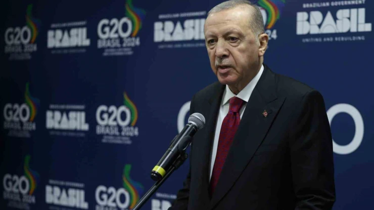 Cumhurbaşkanı Recep Tayyip Erdoğan, Brezilya’nın Rio de Janeiro kentinde düzenlenen G20 Liderler Zirvesi’nin ardından basın toplantısı düzenledi. Cumhurbaşkanı Erdoğan, “Tüm insanlığın vicdanını sızlatan savaşlarda uluslararası kuruluşların iflasına tanıklık ediyoruz” ifadelerini kullandı.