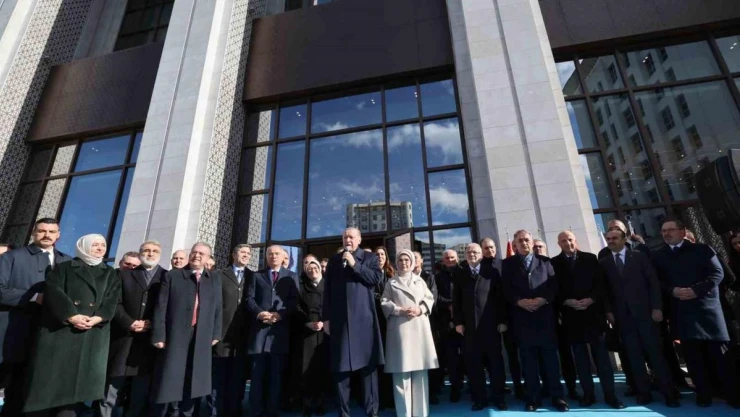 "Türkiye’nin zengin beşeri ve entelektüel hazinesinden daha fazla istifade etmeye çalışacağız" diyen Cumhurbaşkanı Erdoğan, "AK Parti Kongre Merkezi’nin partimize kazandırılmasında emeği geçen tüm dava arkadaşlarımı, işçisinden mühendisine tüm kardeşlerimi canı gönülden tebrik ediyorum. Rabbim bizlere buraların kıymetini bilerek en güzel şekilde milletimize hizmet etmeyi nasip eylesin diyorum. Bu vesileyle kuruluşundan bugüne kadar partimizin farklı kademelerinde görev almış, bu davaya gönül vermiş, emek vermiş tüm kardeşlerimize gayretleri, çalışmaları ve fedakarlıkları için şükranlarımı sunuyorum. Yol ve dava arkadaşlarımızı rahmetle, minnetle, özlemle yad ediyorum. Bugüne kadar destek ve duasını bizlerden esirgemeyen aziz milletimin her bir ferdine teşekkürlerimi iletiyorum. Rabbim yolumuzu, bahtımızı açık etsin diyorum. 31 Mart seçimlerinde inşallah tekrar sandıklardan gümbür çıkarak yola devamları Rabbim bizlere nasip etsin" şeklinde konuştu.