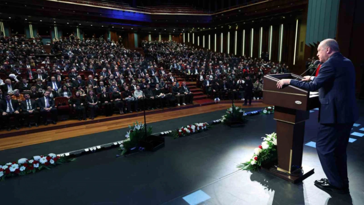 Cumhurbaşkanı Erdoğan, küresel kültür savaşlarında güçlü bir duruş için yerli ve milli kültür değerlerinin evrensel bir bakış açısıyla ele alınması gerektiğine dikkat çekerek, "Yerli ve milli olan kültür değerlerimizi evrensel bir perspektifle harmanlamalı, yeniden üretmeli ve yeniden inşa etmeliyiz" diye konuştu.