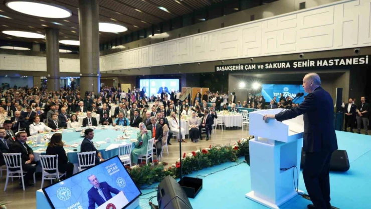 Cumhurbaşkanı Recep Tayyip Erdoğan, 14 Mart Tıp Bayramı kapsamında İstanbul Başakşehir Çam ve Sakura Şehir Hastanesinde sağlık çalışanları için düzenlenen iftar programına katıldı. İftar sonrasında sağlık çalışanlarının tıp bayramını kutlayarak konuşmasına başlayan Cumhurbaşkanı Erdoğan, "Ülkemizin 81 vilayetinde milletimize hizmet eden toplam sayısı 1,5 milyona ulaşan sağlık çalışanlarıma şükranlarımı sunuyorum. Hekimlerle beraber tüm sağlık çalışanlarının Tıp Bayramı’nı kutluyorum. Tıbbiyeliler İstikbal harbimizde hem cephe önünde hem cephe arkasında canlarını tehlikeye atmışlardı" diye konuştu.