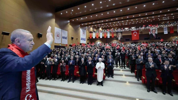 Erdoğan, Kahramanmaraş Deprem Konutları Kura ve Anahtar Teslim Töreninde yaptığı konuşmada, “Muhalefet diyor ki 1 yıl geçti ortada bir şey yok. Kahramanmaraş burada. Zahmet olmazsa turistik ziyaret buraya yapın. En son vatandaşımız konutuna ulaşıncaya kadar durmadan devam edeceğiz. Burada rakam olarak 1 nefeste söylediğimiz rakamın ne kadar arkasında emek olduğunu sizler biliyorsunuz. Bizim inşa ve ihya konusundaki tecrübemiz olmasaydı yaralar bu kadar çabuk sarılmazdı. Şuandaki İBB Başkan Adayımız ve o dönemdeki bakanımız Murat Kurum’un, aynı dönemdeki İçişleri Bakanımız Süleyman Soylu’nun, bütün bakanlarımız ve ekiplerimizin bölgedeki gayretlerini kim inkar edebilir. Bu anlayışla hep hareket ettik ve çalışıp çabaladık. Hiçbir dönemde ayrımcılık yapmadık ve yapmayız. Cumhur ittifakı olarak ülkemizin dört bir yanını taradık, tarıyoruz ve bütün inşa hareketini sona erdireceğiz. Bizim siyasetimiz eser ve hizmet siyasetidir. Belediyelerde 30 yıldır, hükumette 21 yıldır milletimizin gönlündeki yerini korumayı başardık. Yoksa kimse bizim yanımızda kara kaşımız ve gözümüz için durmuyoruz. Ülkemizin asırlık eserlerini yerine getirdiğimiz için bu destekleri alıyoruz. Geçtiğimiz yılın Mayıs ayındaki Cumhurbaşkanlığı ve Meclis Seçimlerinde vaadimiz buydu. Şimdi yerel seçimlerde de vaadimiz aynıdır. Biz eser vermeye, hizmet etmeye, şehirlerimizi Türkiye yüzyılına hazırlamaya talibiz. Bunun dışındaki her tartışmayı, her kavgayı enerji israfı olarak gördüğümüzü tekrarlıyoruz. Şimdi birileri çıkmış Hatay’daki hükumet ve yerel yönetimle iş birliği ifadesinin üzerinde tepiniyor. Hükumet olarak biz hangi partiden olduğuna bakmaksızın bütçeden almaları gereken payı eksiksiz gönderiyoruz. Hakikaten yapacaklarını gördüğümüz projelere borçlanma yetkisi veriyoruz” diye konuştu.