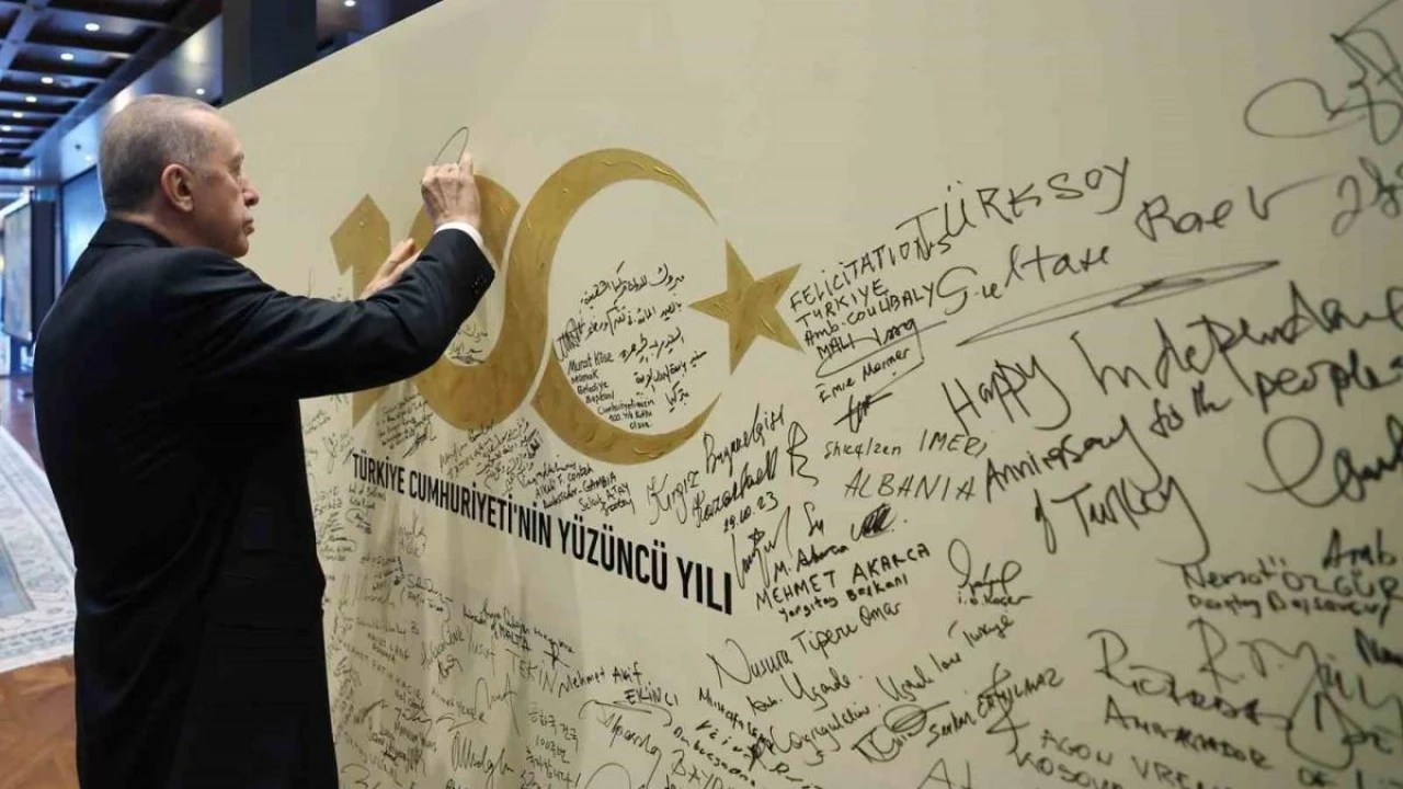 Cumhurbaşkanı Recep Tayyip Erdoğan, 29 Ekim Cumhuriyet Bayramı ve Türkiye Cumhuriyeti’nin 100. yılı kutlamaları kapsamında Anıtkabir’deki törenin ardından Cumhurbaşkanlığı Külliyesi’nde bayram tebriklerini kabul etti.