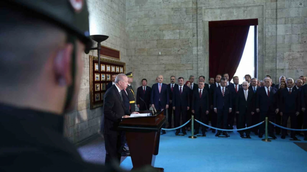 Büyük Zafer’in 103’üncü yılı kutlamaları kapsamında, ilk tören Anıtkabir’de düzenlendi. Tören, devlet erkanının Aslanlı Yol’da yürüyüşüyle başladı. Cumhurbaşkanı Erdoğan başkanlığındaki kortejde, TBMM Başkanı Numan Kurtulmuş, Cumhurbaşkanı Yardımcısı Cevdet Yılmaz, Cumhurbaşkanlığı Kabinesi üyeleri, CHP Genel Başkanı Özgür Özel, MHP Genel Başkanı Devlet Bahçeli, İYİ Parti Genel Başkanı Müsavat Dervişoğlu, yüksek yargı organlarının başkanları, komutanlar, siyasi partilerin temsilcileri, bürokratlar ve diğer devlet erkanı yer aldı. Erdoğan, Atatürk’ün mozolesine ay yıldız motifli çelenk bıraktı. Saygı duruşunun ardından İstiklal Marşı okundu.