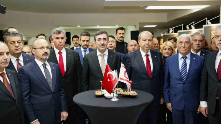 Konuşmasının ardından Cumhurbaşkanı Yardımcısı Cevdet Yılmaz, KKTC Cumhurbaşkanı Ersin Tatar ve beraberindeki kişiler, Güney Kıbrıs’ta kalan Osmanlı-Türk eserlerinin izlerinin silinmeden belgelenmesi amacıyla düzenlenen ve 127 esere ait fotoğraflar içeren sergiyi gezdi.