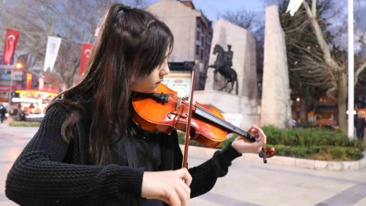 Cumhurbaşkanı ve AK Parti Genel Başkanı Recep Tayyip Erdoğan’ın Denizli mitinginin ardından Cumhurbaşkanlığı otobüsü ile kent turu atarak vatandaşları selamladı. Cumhurbaşkanı Erdoğan, Lise Caddesi üzerinde halkı selamlamaya devam ederken, yol kenarında kemanını çalan 12 yaşındaki Namık Kemal Ortaokulu öğrencisi Ecrin Gülçin Polatlı’yı görünce otobüsün durmasını istedi. Cumhurbaşkanı Erdoğan, Polatlı’yı otobüsüne davet ederek keman çalan öğrenciye eşlik etti. 6’ncı sınıf öğrencisi Polatlı, Cumhurbaşkanı Erdoğan’a önce Samanyolu adlı şarkıyı ardından ise Çanakkale türküsünü kemanıyla çaldı. Cumhurbaşkanı Erdoğan’ın, Ecrin Gülçin Polatlı’nın çaldığı eserlere eşlik etmesi renkli görüntülere sahne oldu.