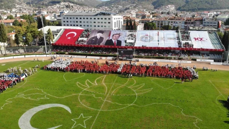 Muğla Atatürk stadyumunda gerçekleştirilen 29 Ekim Cumhuriyetin kuruluşunun 100’üncü yılında çeşitli etkinlikler sergilendi. Muğla Valisi İdris Akbıyık ile Muğla Büyükşehir Belediye Başkanı Dr. Osman Gürün halkın bayramını kutladı. Bayram töreninde öğrencilerin çeşitli gösterileri sergilenirken geçit töreni ile son buldu.