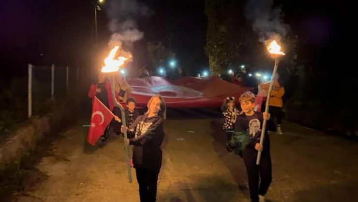 Rize'nin Ardeşen ilçesinde Cumhuriyetin 100. yılı nedeniyle yürüyüş gerçekleştirildi.