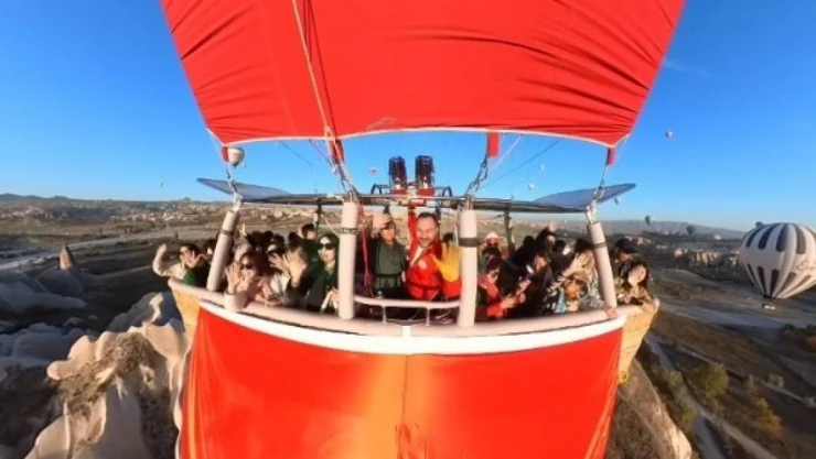 Kapadokya’da cumhuriyetin 100. yılını yerli ve milli balonla Koreli turistlerle birlikte havada kutladılar.