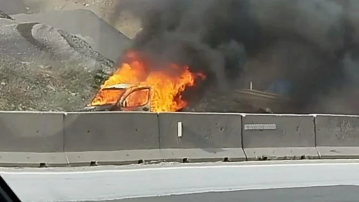 D-650'de alev topuna dönen araç kullanılamaz hale geldi