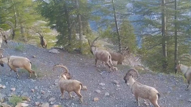 Dağ keçisi sürüsü, Doğa Koruma ve Milli Parklar (DKMP) Genel Müdürlüğünce doğaya yerleştirilen fotokapana takıldı.
