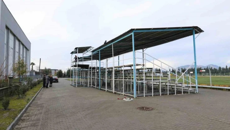 Dalaman Şehir Stadı’na 500 seyirci kapasiteli yeni portatif tribün yapılması, soyunma odalarının bakım ve onarımı, mevcut tribünün koltuklarının yenilenmesi ve aydınlatması için ihale yapıldı. Yapılan ihale sonucunda ihaleyi kazanan firma imzalanan sözleşme sonrası çalışmalarına başladı.