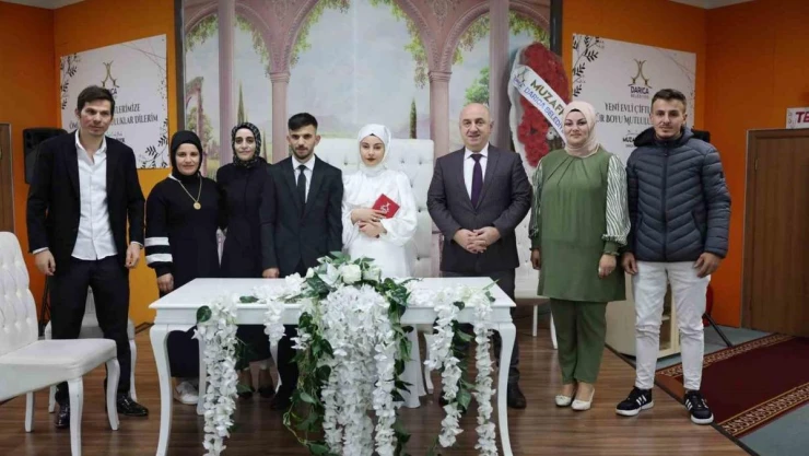 Darıca’da 2024 yılının ilk nikahı kıyılırken Darıca Belediye Başkanı Muzaffer Bıyık da genç çifti yalnız bırakmayarak mutluluklarına ortak oldu.