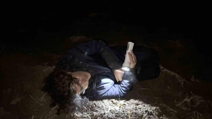 Karla kaplı bir arazide şiddetli soğukta yaşanılan bir depremden bahsediyoruz. Yıkıcı etkisi oldukça büyük olan bu deprem gerek doğada gerekse de insanoğlunun hayatında büyük tahribatlara yol açmıştır. Depremin oluşturduğu yıkımı, anmayı ve hatırlatmayı içinde barındıran bir performans dili söz konusudur. Sanatçı, üzerinden 84 yıl geçen depremde, toprak altında kalan amcasını kaybetmiştir. Aynı depremde, babasının çocukluğunda toprak altında kaldığı evin bugün tarlaya dönmüş olan yerinde gerçekleştirdiği performansta, evin bulunduğu alanı adeta fenerle çizerek gösterdi. Ardından babasının ve diğer büyüklerinin yattıkları mekânda anlatılanlar üzerinden yatış şeklini belirledi. Depremde anlatılanları düşünerek ve depremin yaşandığı zamandan kalan sesleri dinleyerek saat 01:57’den itibaren belli bir süre toprak üzerinde yatmıştır. Sonrasında ayağa kalkıp evi belirlediği alanda, o yıkılmışlık halini ışıkla zikzaklar yapıp yürüyerek o gün yaşanan durumu algılamayı, anlamayı ve o günü hatırlatmayı amaçlamıştır. Kavukcu, hem geçmişi gecenin karanlığında anlatma açısından hem de geleceğe umut olması adına ışığı kullanmıştır.
