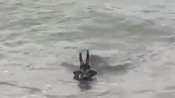 Denize düşen karacayı vatandaşlar kurtardı