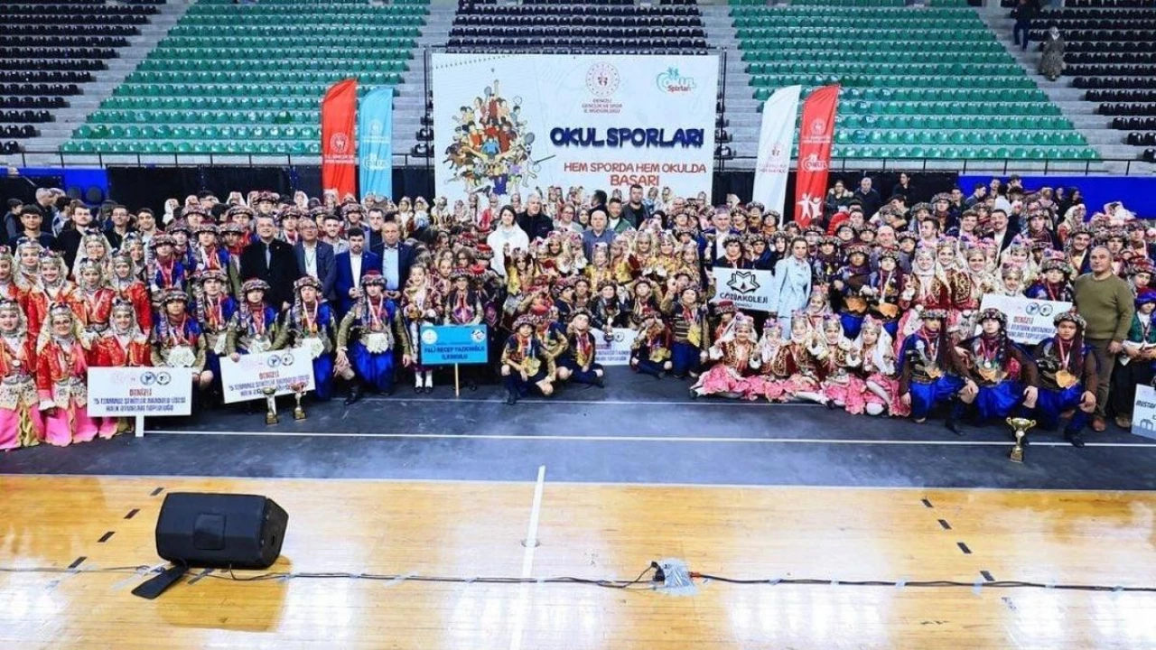 Denizli'de 15 ekipten oluşan 480 sporcu Halk Oyunları İl Şampiyonası'nda farklı kategorilerde performanslarının sergiledi. Dereceye giren sporcular ödüllerini aldı.