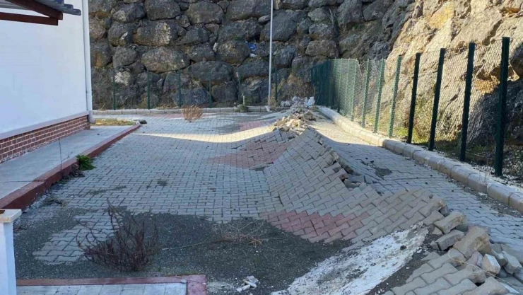 - Deprem görmüş gibi: Yeni yapılan okulun bahçesinde göçükler, duvarında çatlaklar oluştu