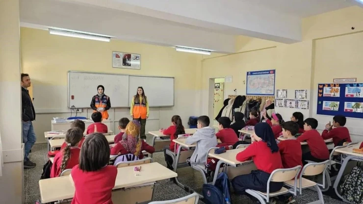 Bayburt İl Afet ve Acil Durum Müdürlüğü katkılarıyla öğrencilere deprem öncesinde, sırasında ve sonrasında yapılacaklar eğitmenler Ali Varol ve İhsan Oğuz tarafından anlatıldı. Çök-Kapan-Tutun yöntemine dikkat çeken eğitmenler, hayat üçgeninin önemine vurgu yaptılar.