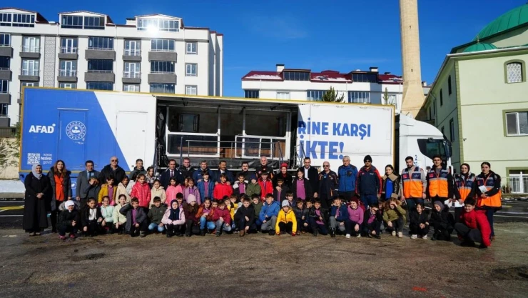 Deprem bilincini artırmak, deprem anı ile deprem sırasında yapılması gereken doğru davranışlar AFAD eğitmenleri tarafından öğrencilere uygulamalı bir şekilde anlatıldı. Öğrencilerin merak ettiği sorulara da yanıt verilmesinin ardından deprem tırına farklı sürelerde ve şiddetlerde sarsıntı verildi. 7.2 büyüklüğündeki deprem anının yaşatıldığını tırda, öğrenciler çök-kapan-tutun yöntemiyle sarsıntının durmasını beklediler. Erzincan depremini anbean yaşayan öğrenciler çök-kapan-tutun yöntemini kavramanın yanında tahliye edilirken panik yapılmamasını, dışarıya çıkarken başlarını koruyarak çıkılması gerektiğini öğrendiler. Eğitmenlerin anlattıklarını uygulayan öğrenciler bir deprem karşısında ne yapacaklarının farkına vardılar.