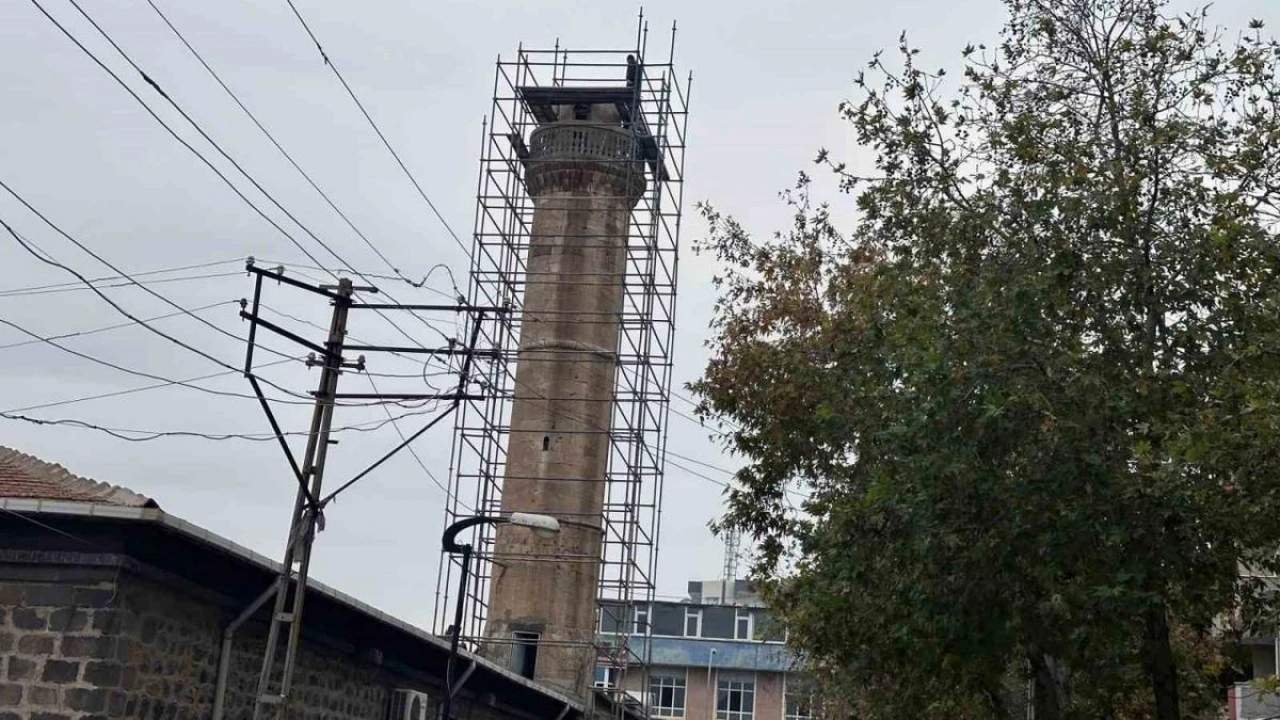 Depremde zarar gören Ulu Camii minaresi onarılmaya başlandı