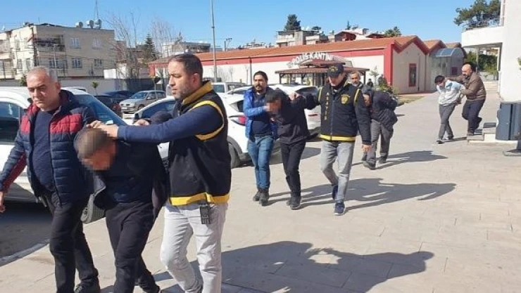 Gözaltına alınan zanlılar ifadeleri alınmak üzere Adana İl Emniyet Müdürlüğüne götürüldü.