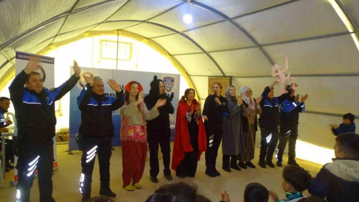 Malatya'da Toplum Destekli Polislik Şube Müdürlüğü ekipleri, yarı yıl tatilinde olan depremzede öğrenciler için sahne aldı. Polislerden oluşan tiyatro ekibi, çocukları hem eğlendirdi hem de bilgilendirdi.