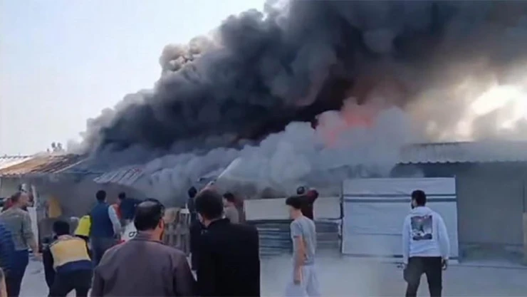 Hatay'da geçici yaşam merkezinde çıkan yangında 3 konteyner alevlere teslim oldu.