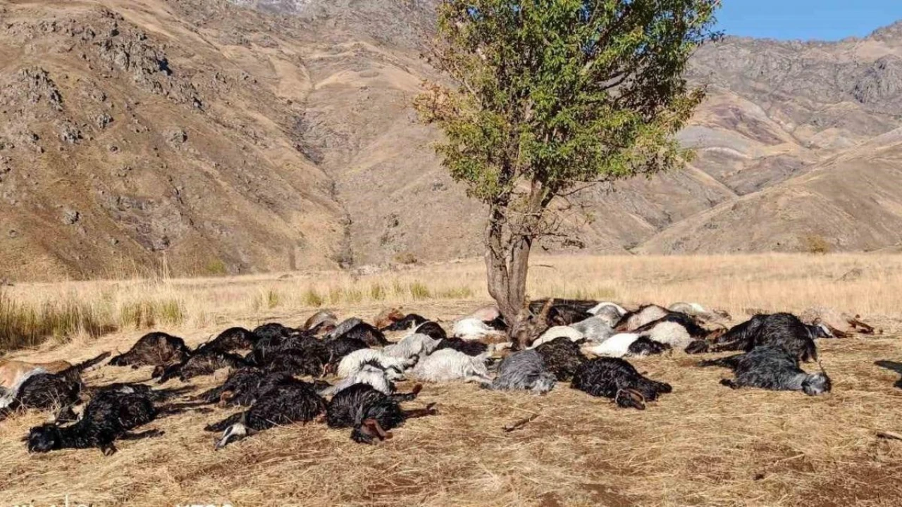 Hakkari'nin Derecik ilçesinde yıldırım düşmesi sonucu 62 küçükbaş hayvan telef oldu.