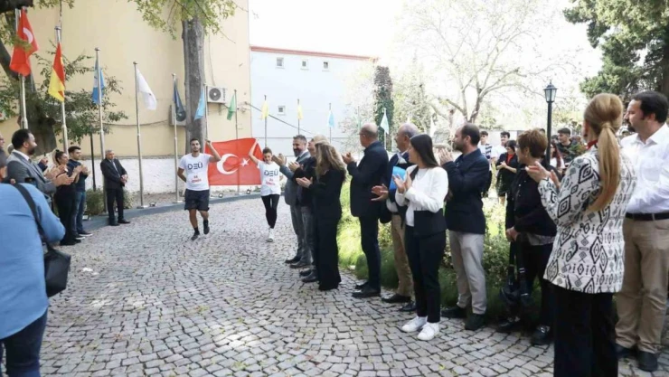 Cumhuriyet'in kuruluşunun 100'üncü yılını düzenlediği etkinliklerle dolu dolu geçiren Dokuz Eylül Üniversitesi (DEÜ), Türkiye'nin 81 ilinden 81 öğrencisinin katılımıyla 'Cumhuriyete Saygı' yürüyüşü gerçekleştirdi. Bornova Belkahve'den Konak Cumhuriyet Meydanı'na ve oradan da Buca'ya uzanan yaklaşık 30 kilometrelik yürüyüş, öğrencilerin elden ele taşıdığı Türk bayrağı ve üniversite flaması, düzenlenen Bayrak Teslim Töreni ile DEÜ'nün Bayrak Müzesine teslim edildi. Törende konuşan DEÜ Rektörü Prof. Dr. Nükhet Hotar, DEÜ Bayrakbilim ve Türk Bayrakları Müzesi'nde tamamlandı. Gururla taşıdığımız şanlı Türk bayrağımızı da eşsiz emanetlerin sergilendiği DEÜ Bayrakbilim ve Türk Bayrakları Müzemize teslim ettik. Bize destek olan öğrencilerimize ve büyük ailemizin temsilcilerine teşekkür ediyoruz' dedi.