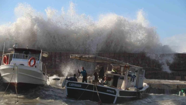 Meteorolojinin "Turuncu" kodla uyardığı Antalya’da oluşan dev dalgaların ardından 1 tur ve 2 balıkçı teknesi battı. Gece boyunca süren yağışta çok sayıda ev ve iş yerini su bastı, araçlar yolda kaldı.