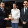 Konuşmaların ardından Devrek İlçe Kaymakamı Muhammed Evlice tarafından Rıfat Verim’e başarılı çalışmalarından dolayı plaket takdim edildi.