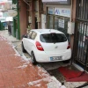 Dik yokuşta kontrolden çıktı, merdivenlerde askıda kaldı