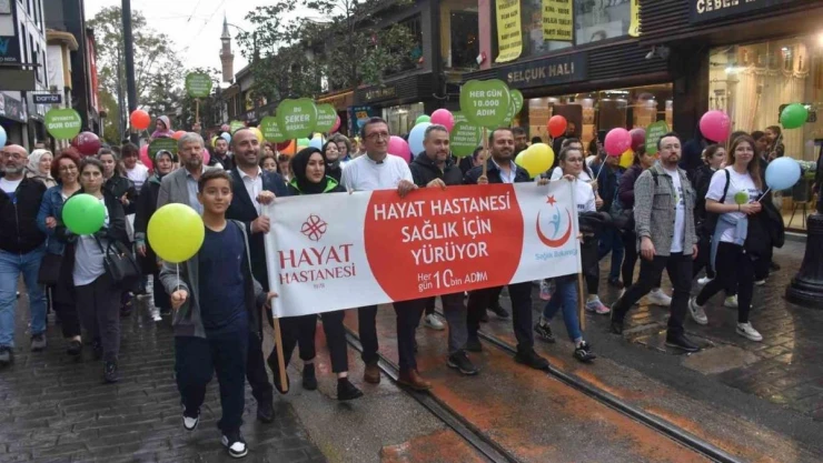 Hayat Hastanesi tarafından geleneksel hale getirilen ve bu yıl 5’ncisi gerçekleşen diyabet yürüyüşüne katılan Hayat Hastanesi Yönetim Kurulu Başkan Yardımcısı ve Başhekimi Uzm. Dr. Fatih Özkul, yönetim kurulu üyeleri, doktorlar ve çok sayıda vatandaş, diyabet hastalığına dikkat çekmek için ellerinde balonlar ve pankartlarla yürüdü. Barış Kadın Bando Takımı’nın çaldığı marşlar eşliğindeki yürüyüş Cumhuriyet Caddesi’nden başlayıp, Zafer Plaza Meydanı’nda son buldu.