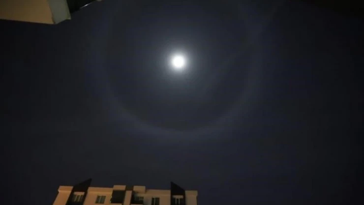 Diyarbakır’da akşam saatlerinde dikkat çeken bir görüntü oluştu. Her geçen dakika kendini belli eden ay halesi, ortaya kartpostallık görüntü çıkardı. Fotoğraf sanatçısı Mehmet Kılıçoğlu, ay halesini fotoğrafladı.
