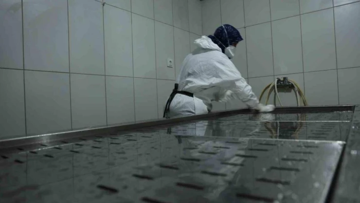 “Mezar kazanından kepçecisine, erkek imamdan kadın gassala kadar, birim olarak hazırlık yaparız” diyen Çınar, “Araç gider cenazeyi alır biz de burada teslim alırız. Burada yıkama işlemini gerçekleştiririz. Ondan sonra aileye yardımcı olabilecek şekilde cenaze aracıyla aile mezarlığı, asri mezarlık, neresi olursa olsun yardımcı olunur. Son dakikaya kadar bütün işlemler yapılır. Normal bir cenazede naylonsuz kefen kullanırız. Ama adli tıptan veya kanamalı cenaze olduğu zaman naylon kullanılır. Ölü, temiz bir cenaze ise 25-30 dakika arasında yıkanır. Kanamalı ise bizi uğraştıracaksa 40 dakikayı da bulur, süre değişiyor” dedi.