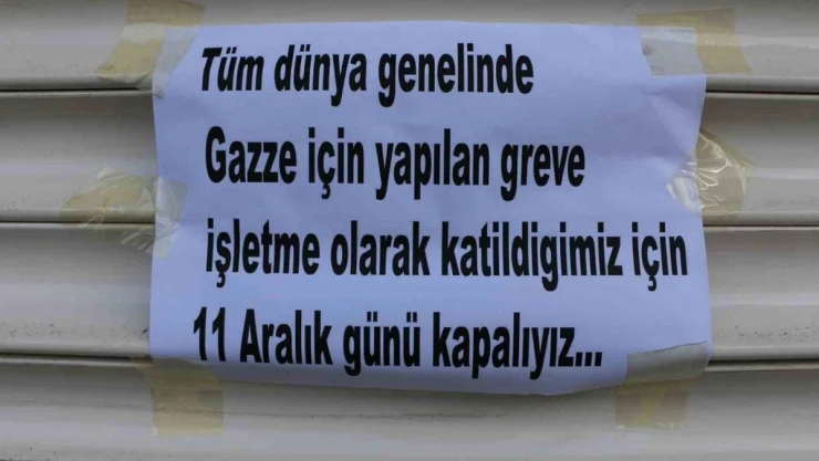 Esnaf, “Tüm dünya genelinde Gazze için yapılan greve işletme olarak katıldığımızdan dolayı 11 Aralık günü kapalıyız” yazılı kağıdı kepenk üzerine asarak greve destek verdi.