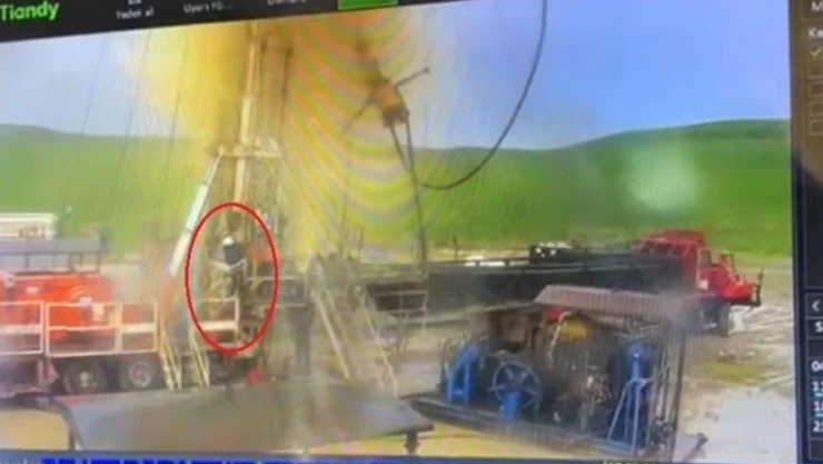 Diyarbakır’ın Silvan ilçesinde 1 işçinin öldüğü, 1 işçinin yaralandığı TPAO’ya ait petrol kuyusunda sondaj çalışmasında meydana gelen patlama, güvenlik kamerasına saniye saniye yansıdı.