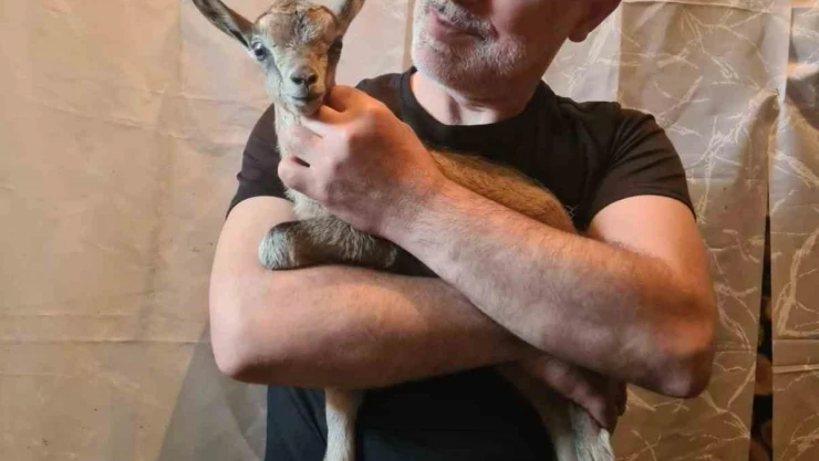 Doğada bitkin halde bulduğu dağ keçisi yavrusunu biberonla besledi