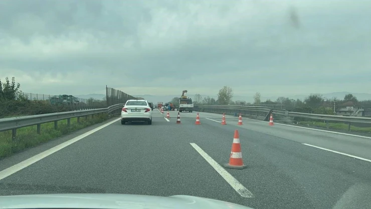 Anadolu Otoyolu Düzce geçişinde karayolları ekiplerince dolgu çalışması sebebi ile uzun araç kuyrukları oluştu.