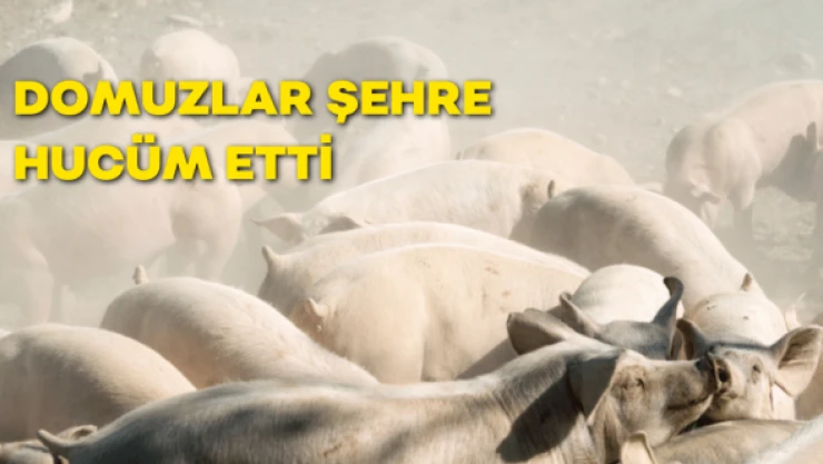 Kalabalık olan ve yavru domuzların da yer aldığı sürü, bir süre aracın önünde koştuktan sonra yolun kenarına geçerek gözden kayboldu.