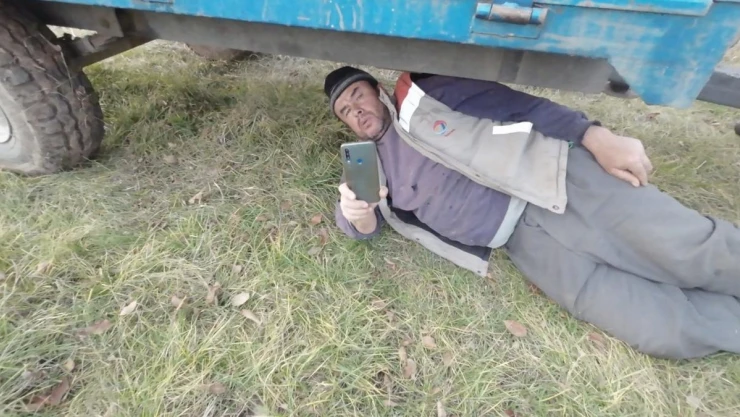 Teslim olur gibi yere yattı, traktörün altına saklandı