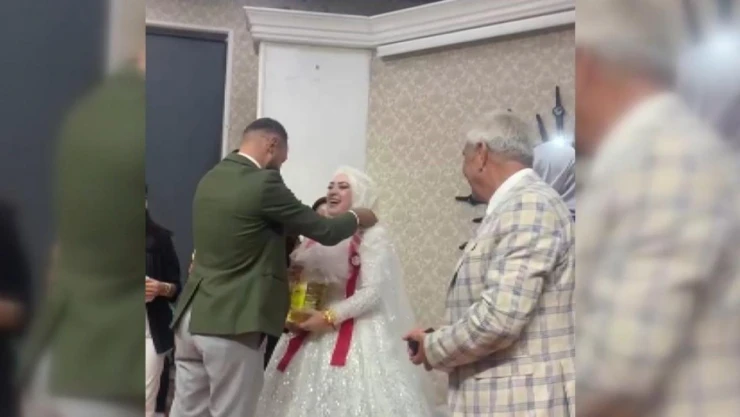 Düğünde geline altın yerine 5 litrelik Ayçiçek yağı takıldı