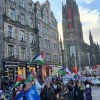 İskoçya'nın başkenti Edinburgh'ta düzenlenen Filistin'e destek yürüyüşünde Gazze Şeridi'ne yönelik saldırılarını sürdüren İsrail'e tepki gösteren binlerce kişi, 'Özgür Filistin' sloganları attı.
