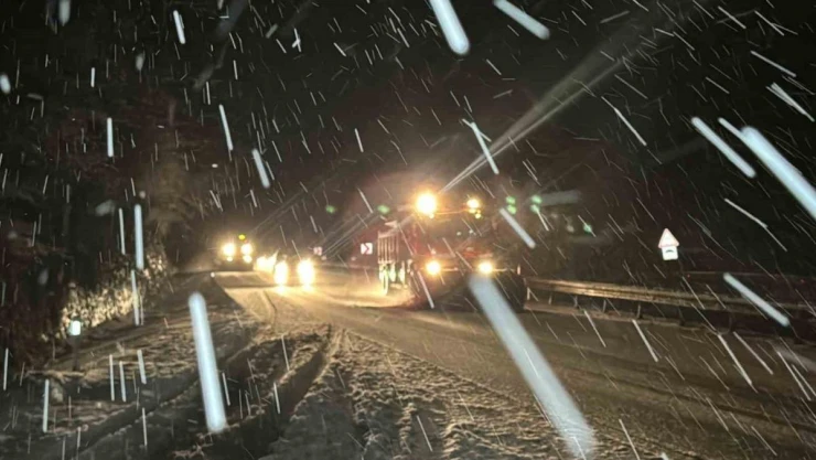 Düzce’de kar yağışı aralıklarla devam ediyor. Özellikle kentin yüksek kesimlerde şiddetli bir şekilde devam eden kar yağışı sebebi ile Düzce-Zonguldak D-655 karayolu karla kaplandı. Yolun trafiğe kapanmaması için Karayolları ekipleri yolda karla mücadele çalışmalarını sürdürüyor. Ekipler güzergah üzerinde sürekli küreme ve tuzlama çalışması yaparak yolun açık kalmasını sağlıyor.