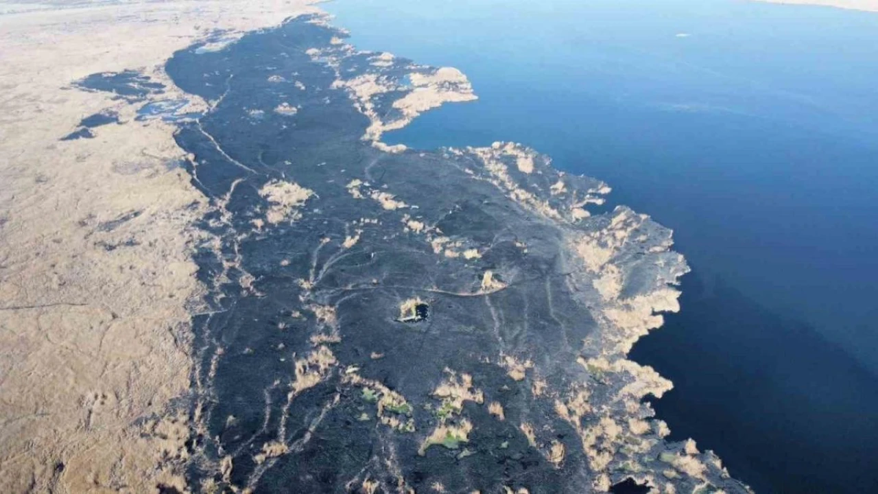Eber Gölü'deki yangında zarar gören 40 futbol sahası büyüklüğündeki alan havadan görüntülendi
